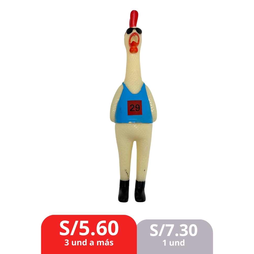 Juguete para mascota en forma de pollo blanco con lentes, incluye rechinador para mayor diversión durante el juego