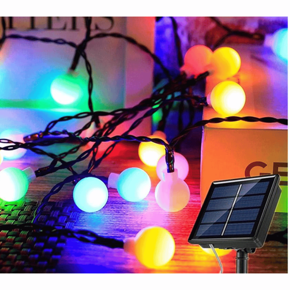 | Luz Decorativa Guirnalda De Luces LED – Con Panel Solar Color de Luz: Multicolor Longitud: 8 Metros Luz LED Tamaño panel: 7x7cm *Se recarga con luz solar* |