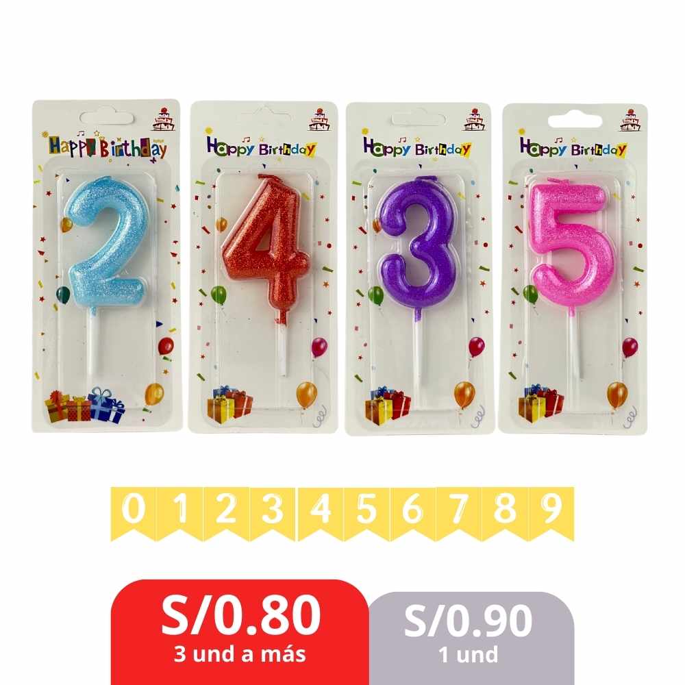 Usos: Ideal para tortas de cumpleaños, aniversarios y celebraciones especiales, disponible en todos los números del 0 al 9, fácil de colocar y retirar sin dañar el pastel